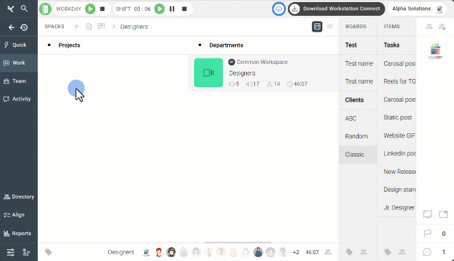 • Move between Spaces → Boards → Items efficiently in either mode.
