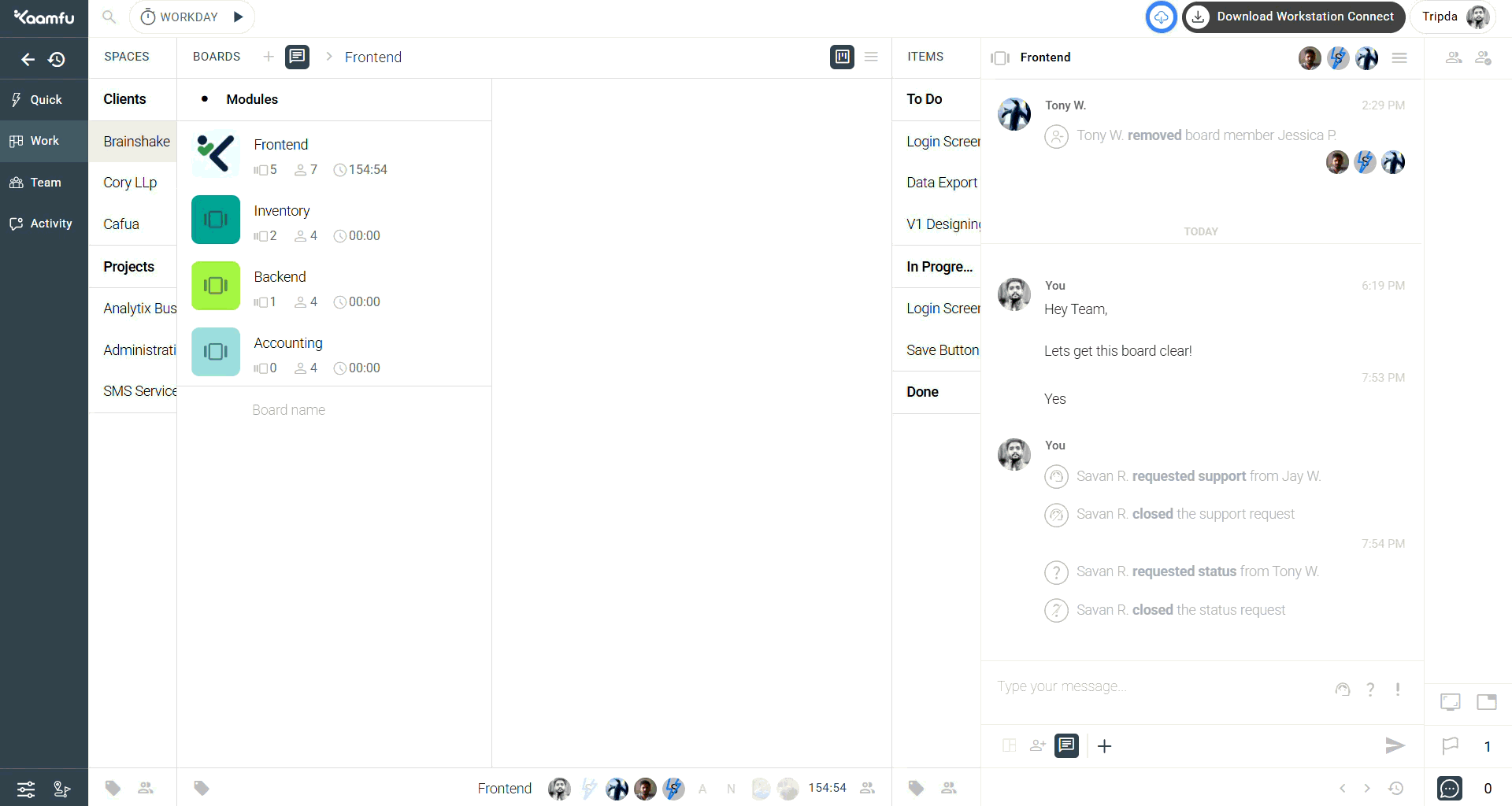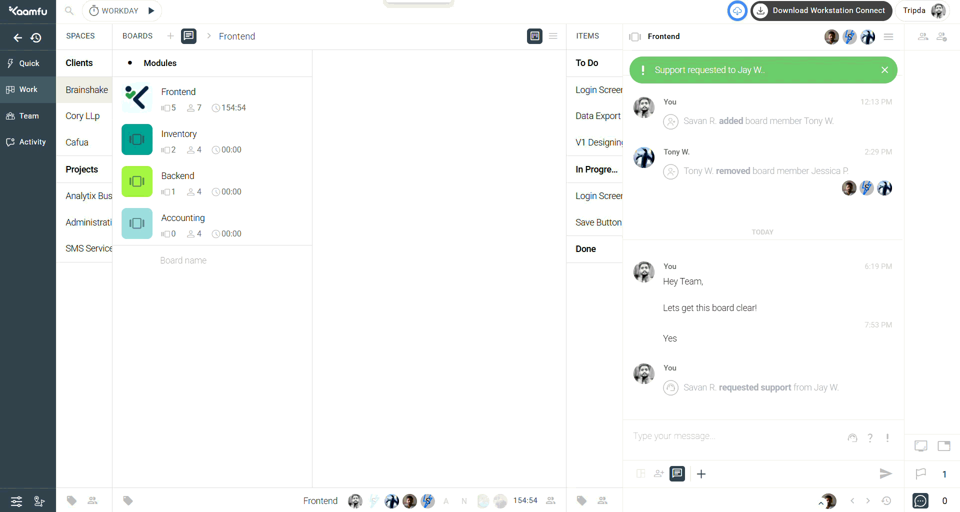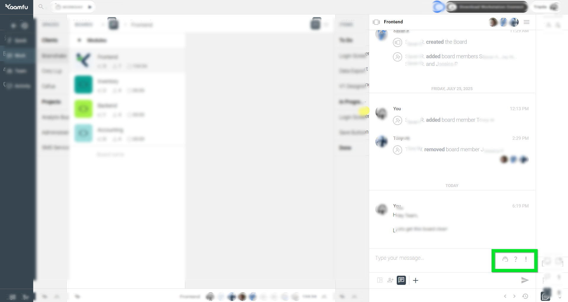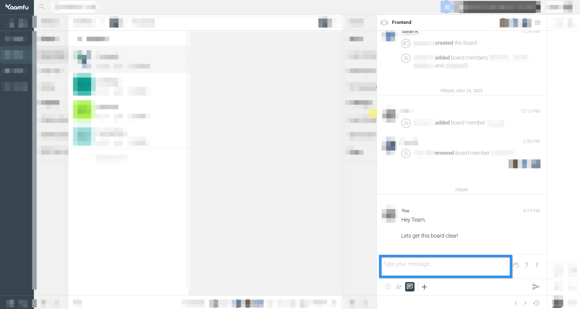 The Message Box ensures that all communication in Kaamfu remains clear and actionable. It helps: