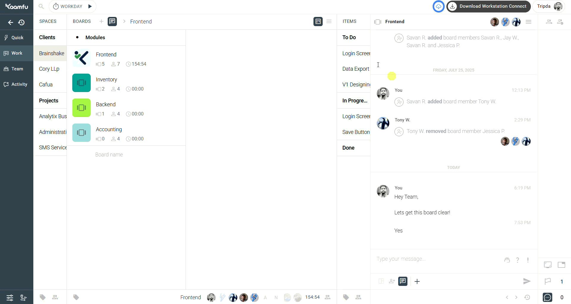 This guide is designed for all Kaamfu users who participate in workspace conversations. Whether you’re a manager requesting updates or a team member sharing files, the Message Box is relevant for you.