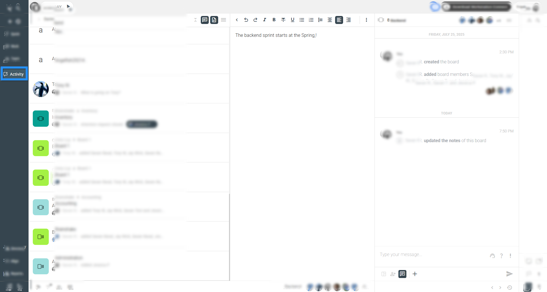 - Displays new messages, updates, and notifications across chats, Spaces, Boards, and Items.