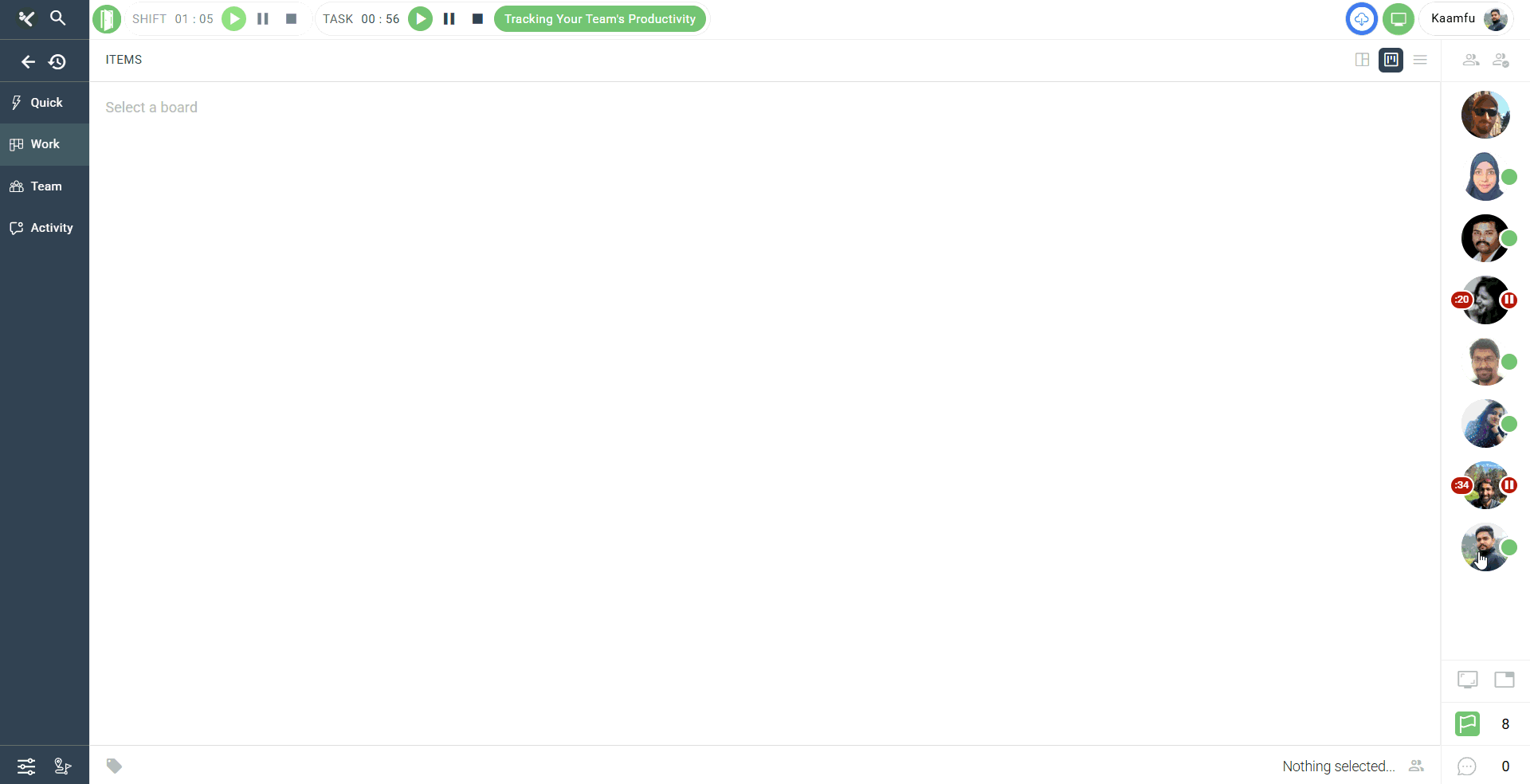 Kaamfu’s Productivity Panel is your command center for monitoring tasks and employee worklogs.