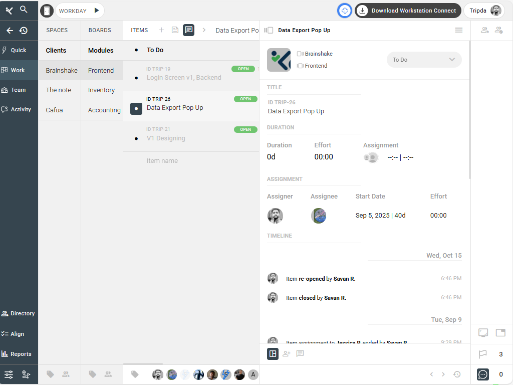 - Track effort, duration, and assignments in one place.