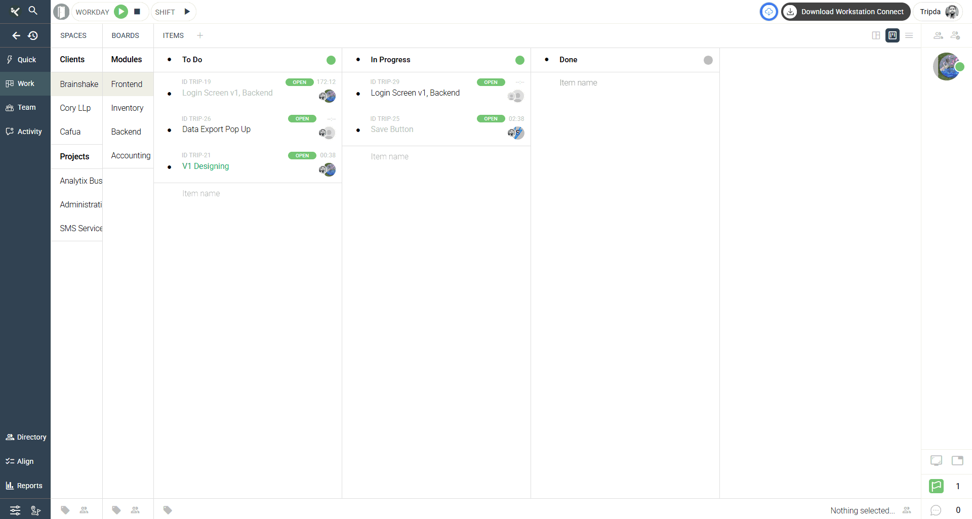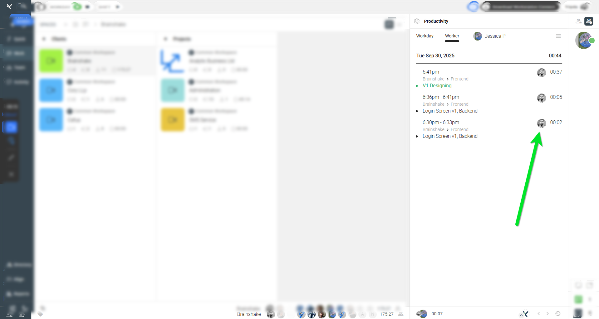 The Worker Tab provides detailed insights into individual productivity, allowing organization owners to analyze each employee’s worklog and time allocation.