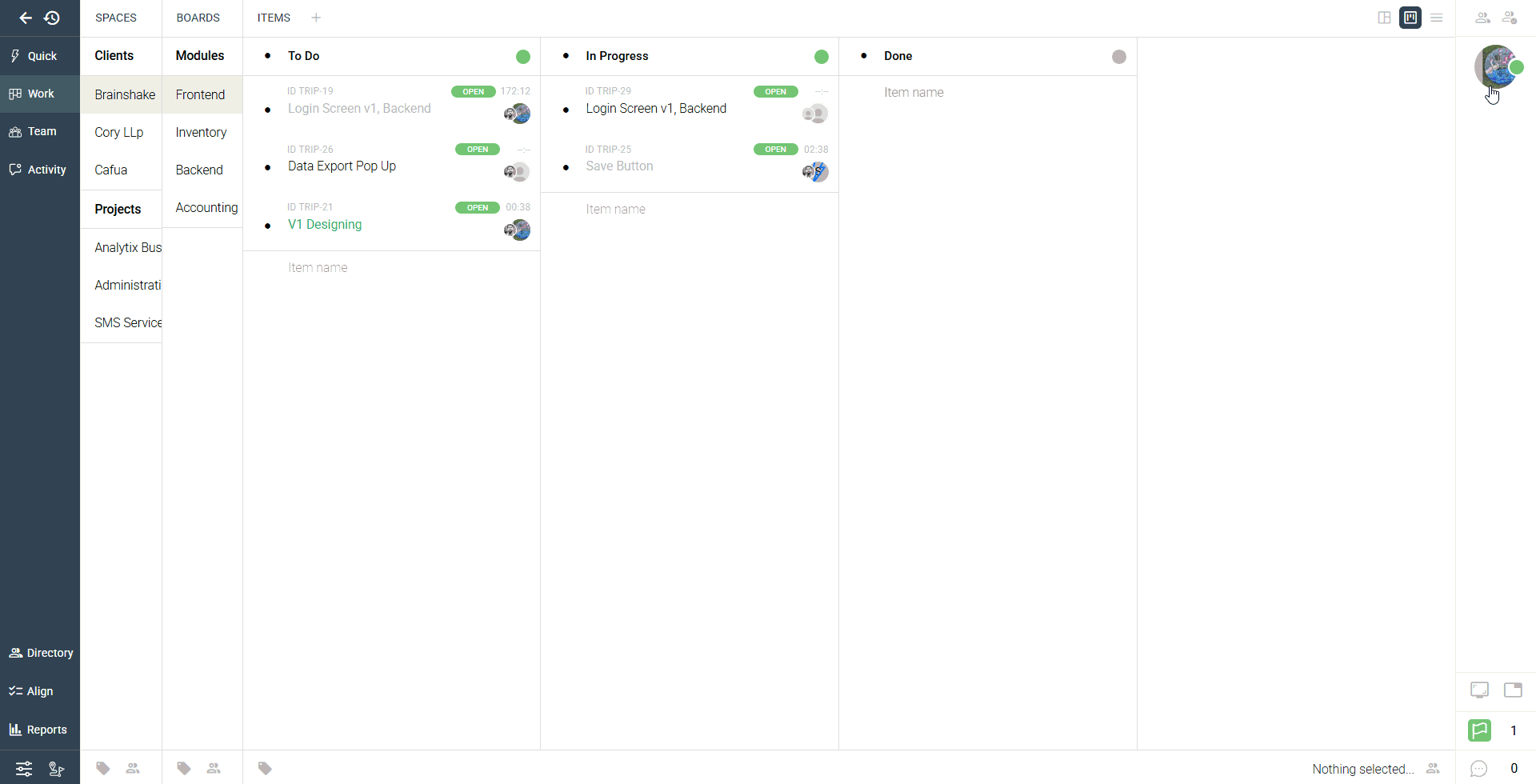 - Assigned user and task ownership details